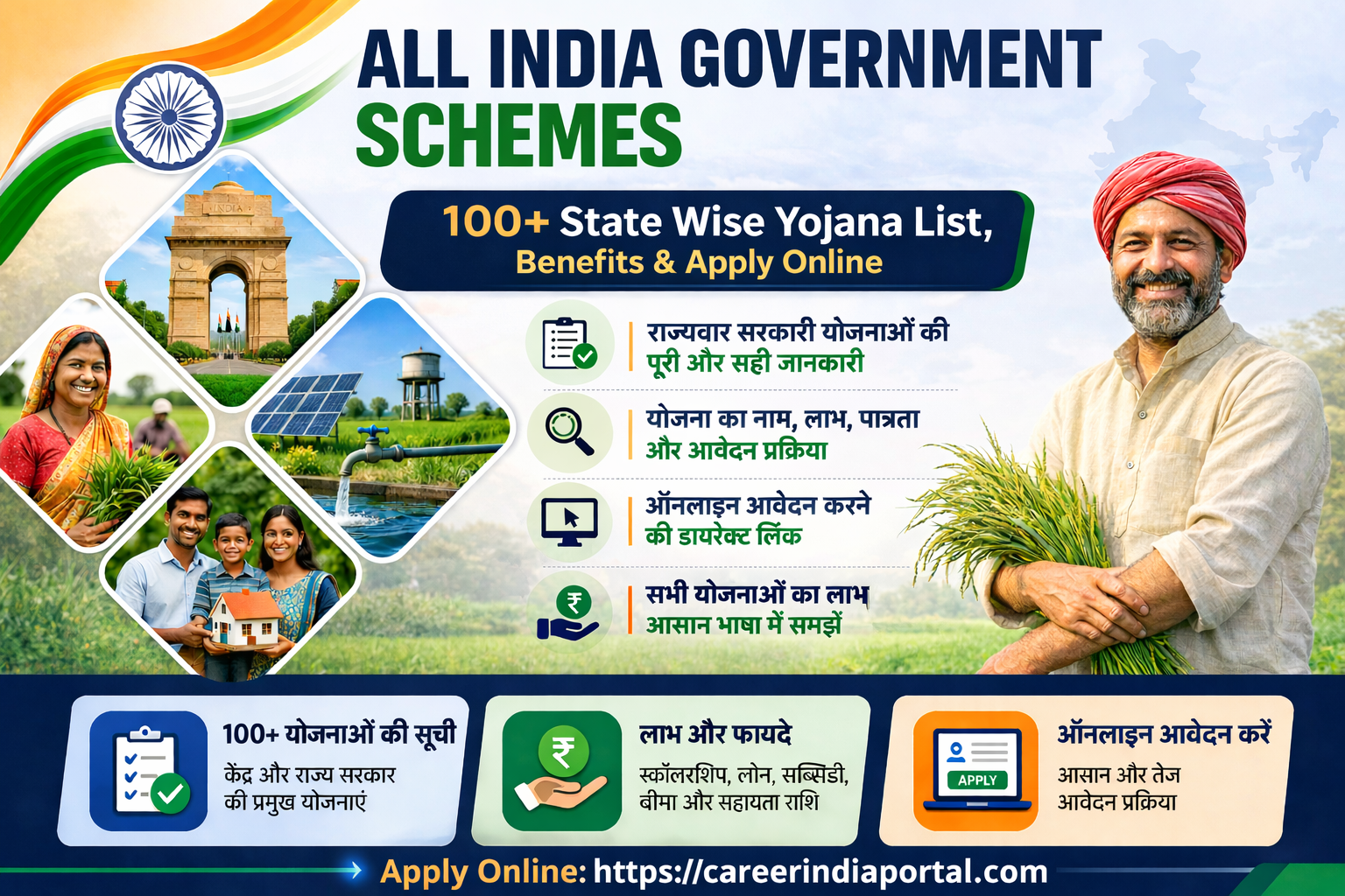 All India Schemes 2026 is a complete updated database of 100+ central and state government welfare schemes in India. Here you can find PM Yojana, state schemes, eligibility criteria, benefits, required documents and step-by-step online application process in one place.